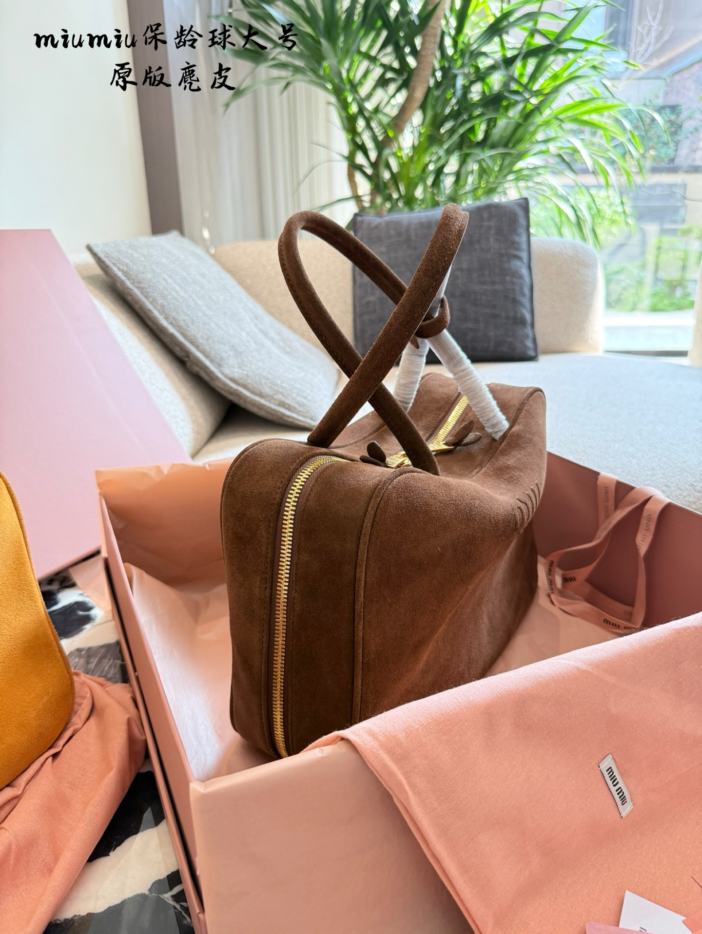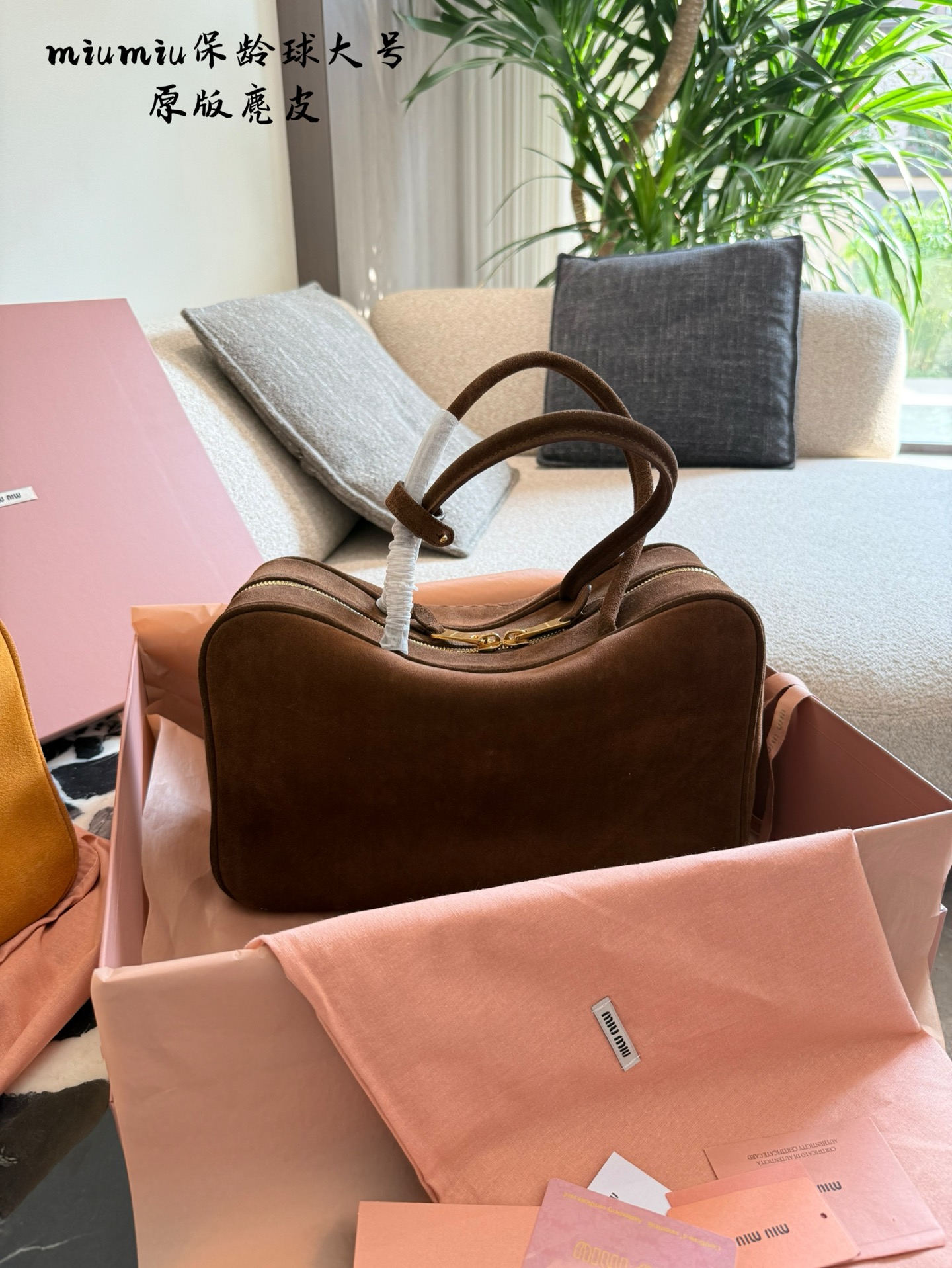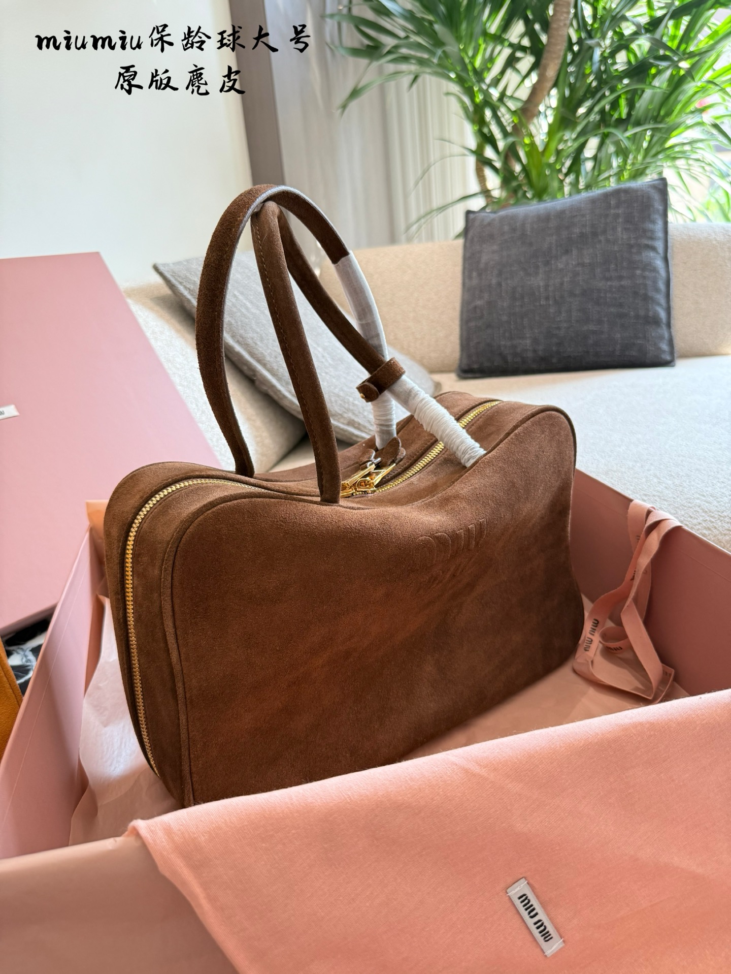 This Miu Miu bowling bag from the 2025 Fall/Winter collection is a must-have. Crafted from top-tier suede, this bag offers a unique and personalized aesthetic.