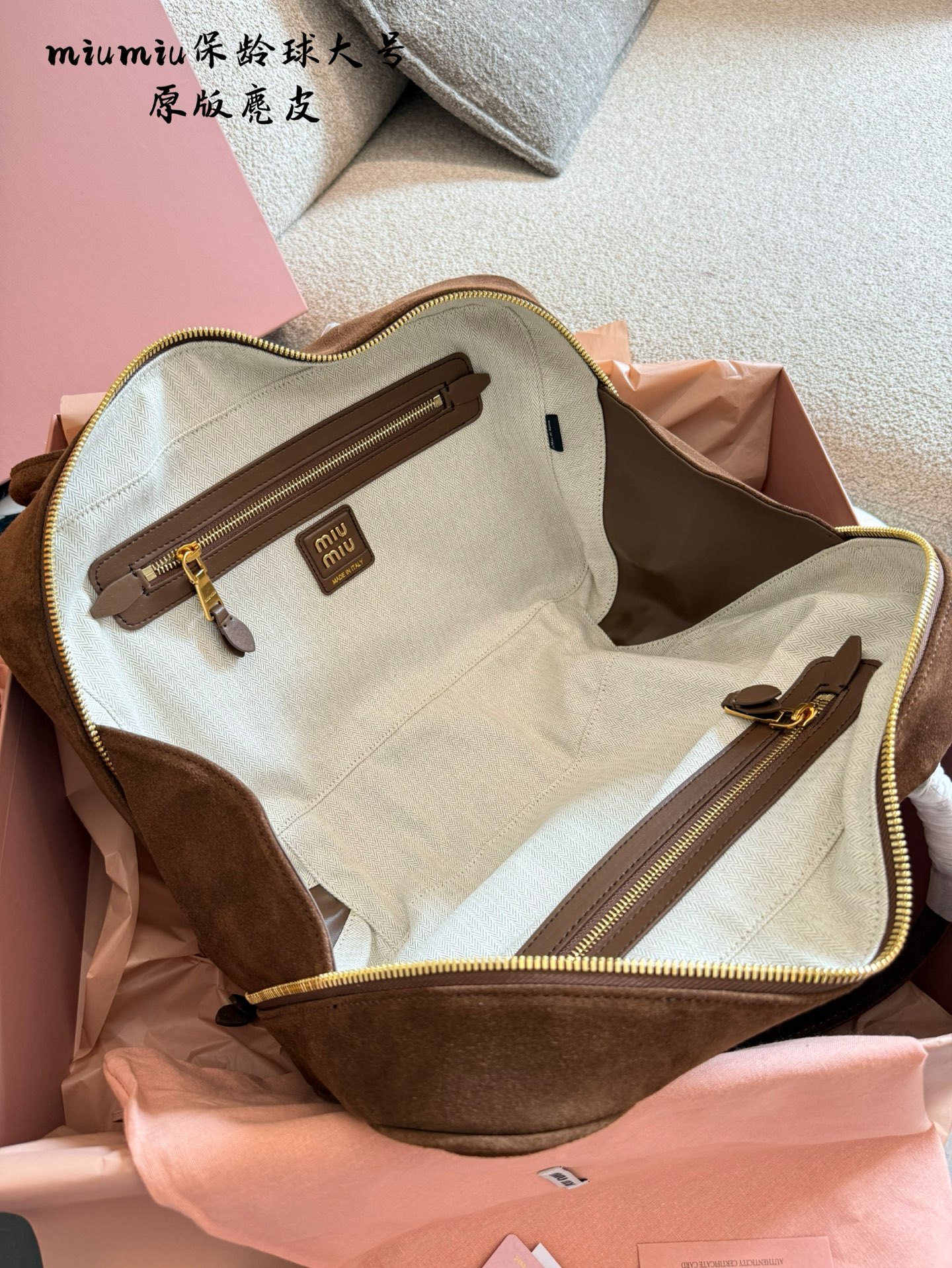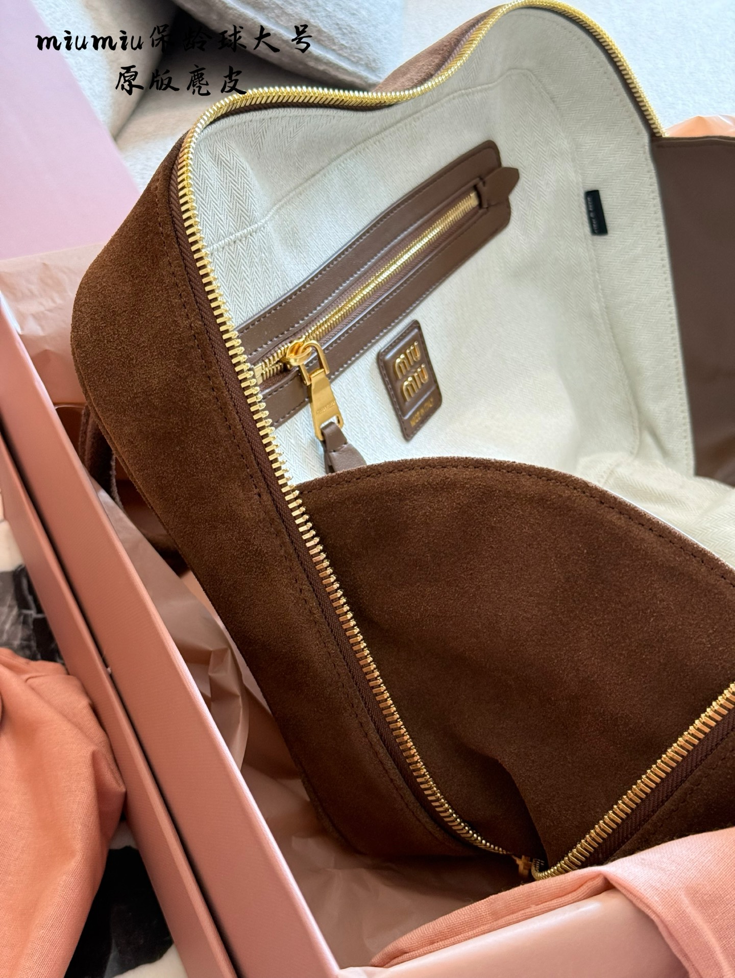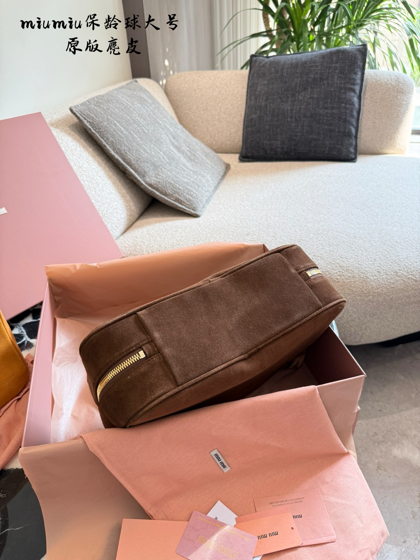 This Miu Miu bowling bag from the 2025 Fall/Winter collection is a must-have. Crafted from top-tier suede, this bag offers a unique and personalized aesthetic.