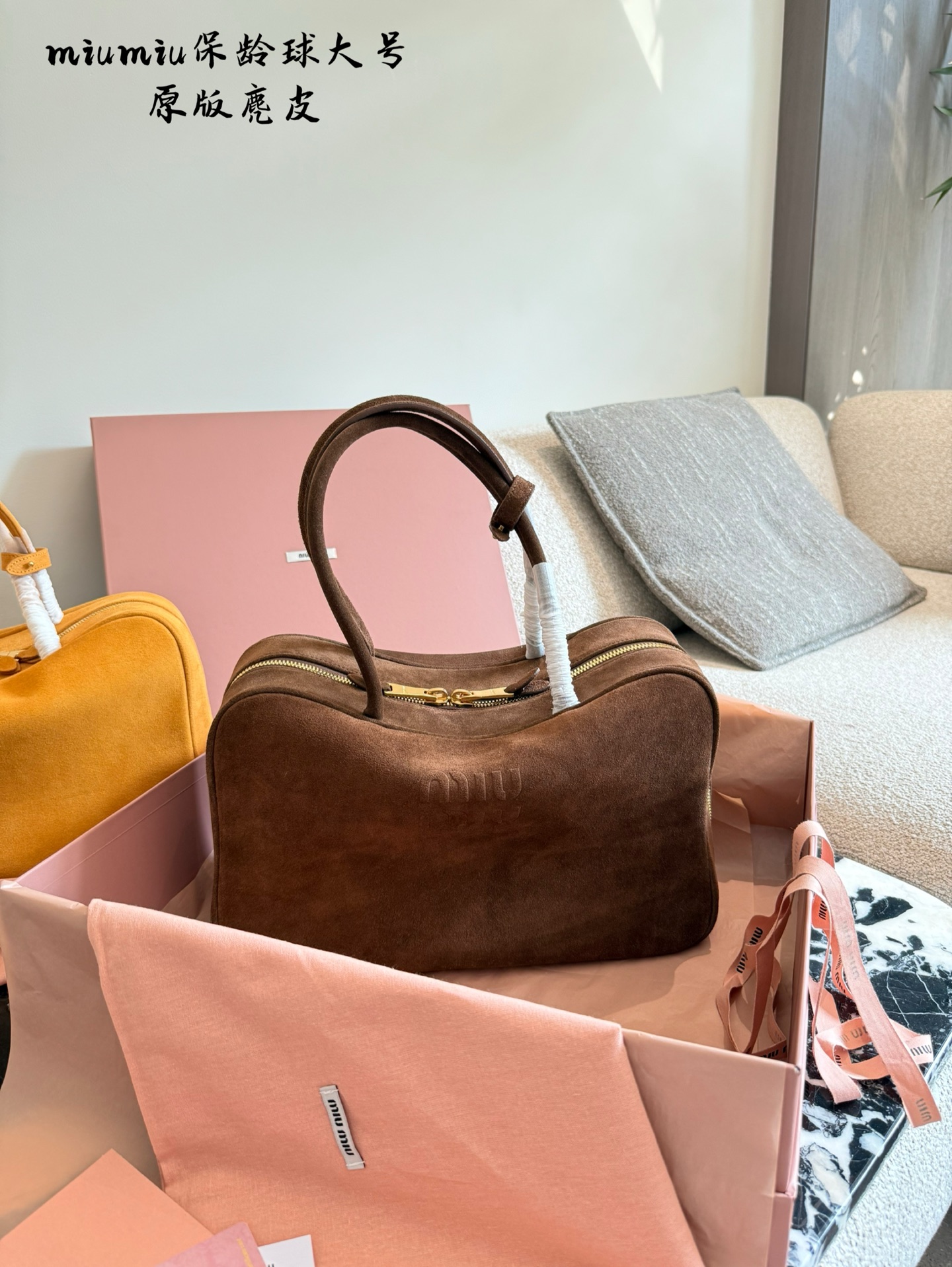Miu Miu 2025 Fall/Winter Suede Bowling Bag, 35cm Designer Handbag