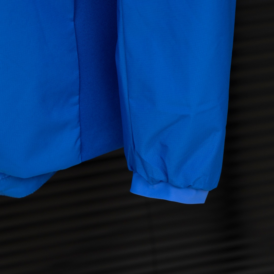 - Full front zip with wind flap