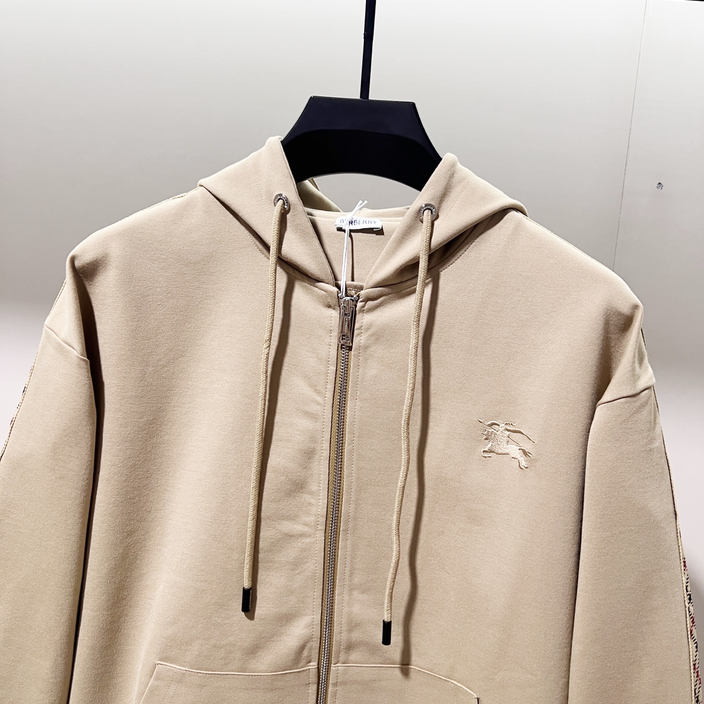 Tags: Burberry Hoodie, Casual Jacket, Check Sleeve Hoodie, Designer Hoodie, Embroidered Logo Hoodie, Zip Up Sweatshirt