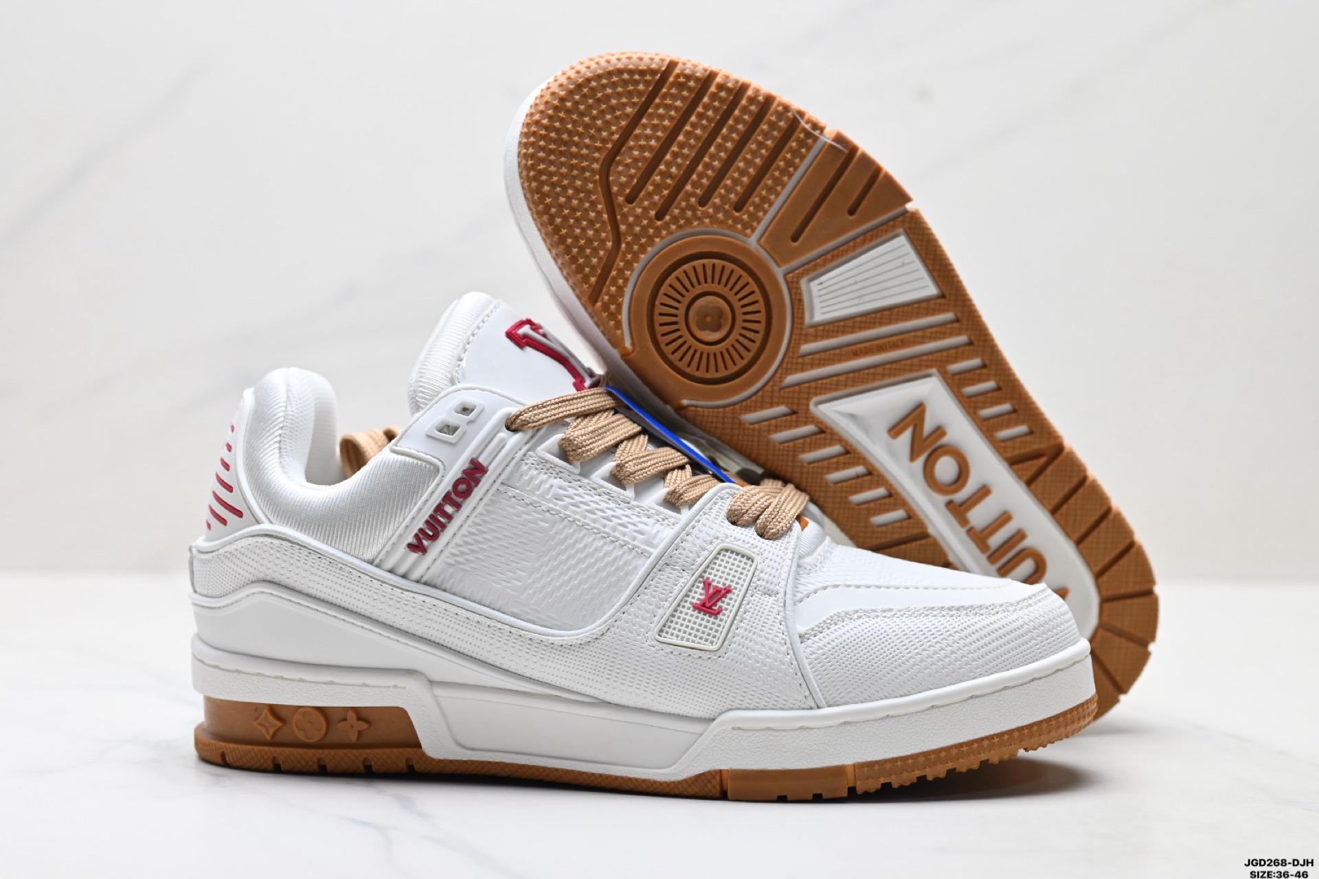 Step out in style with these Louis Vuitton Trainer Sneakers. Stylish, versatile, and comfortable for everyday wear. Available in sizes 36-46.